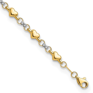 14K Two-tone Polished D/C Heart 7.5in Bracelet