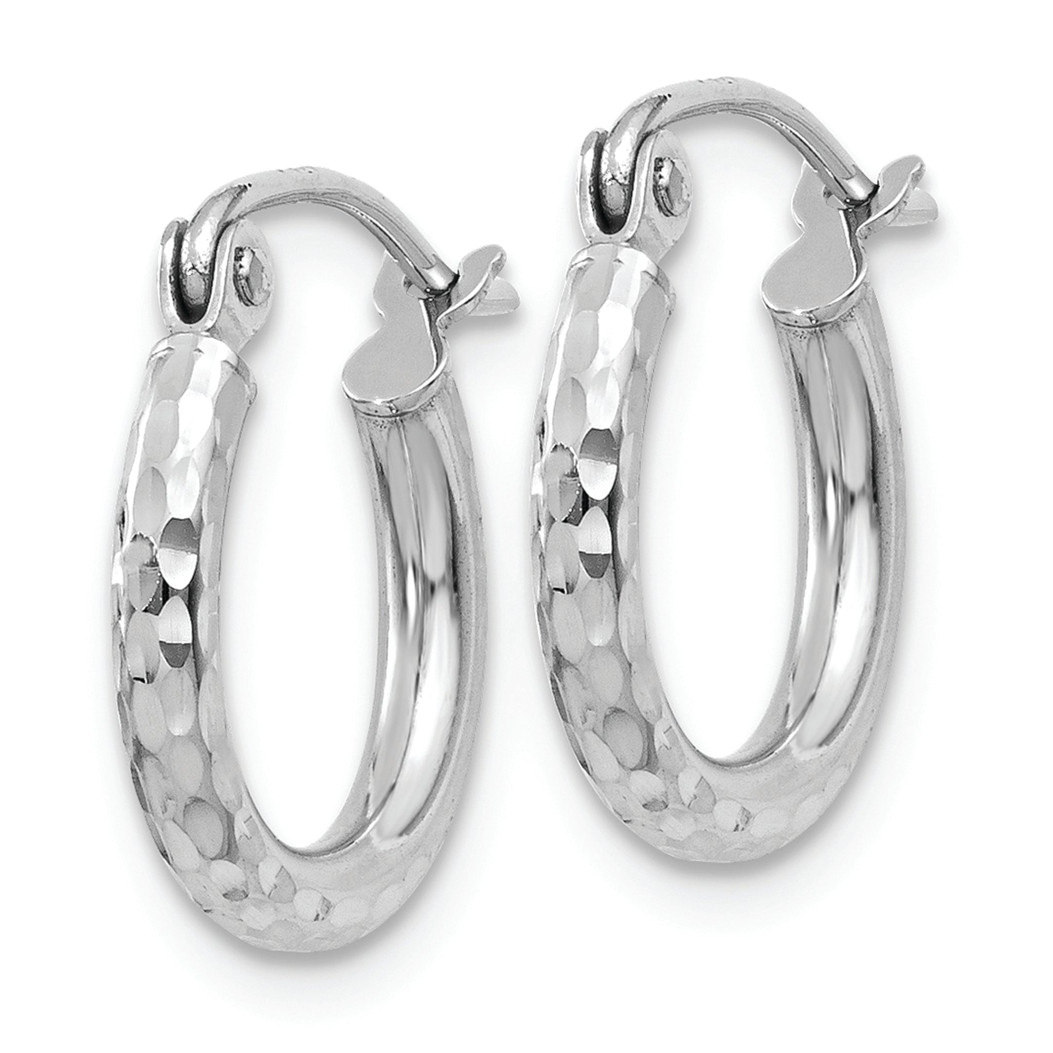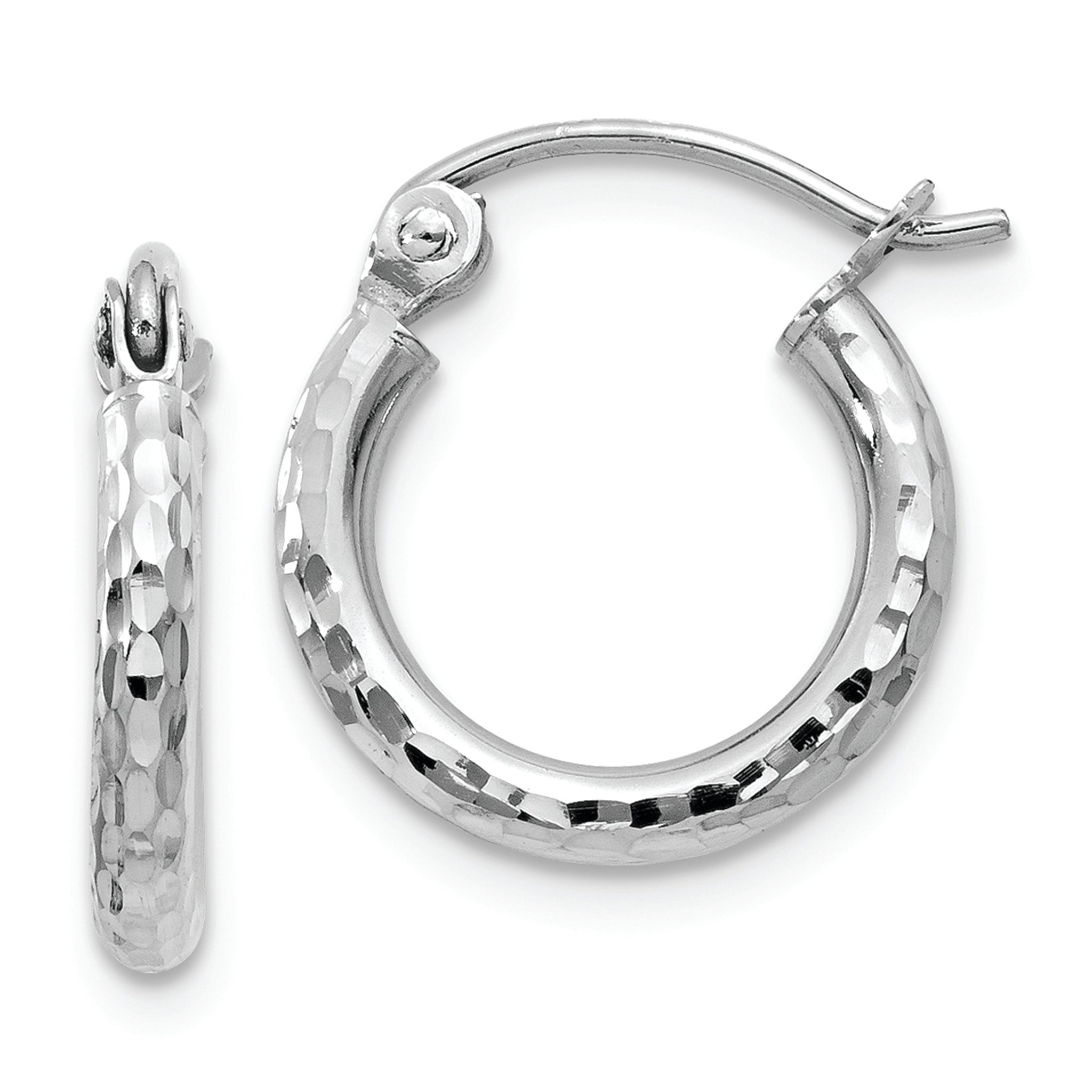 14k White Gold Diamond-cut 2mm Round Tube Hoop Earrings