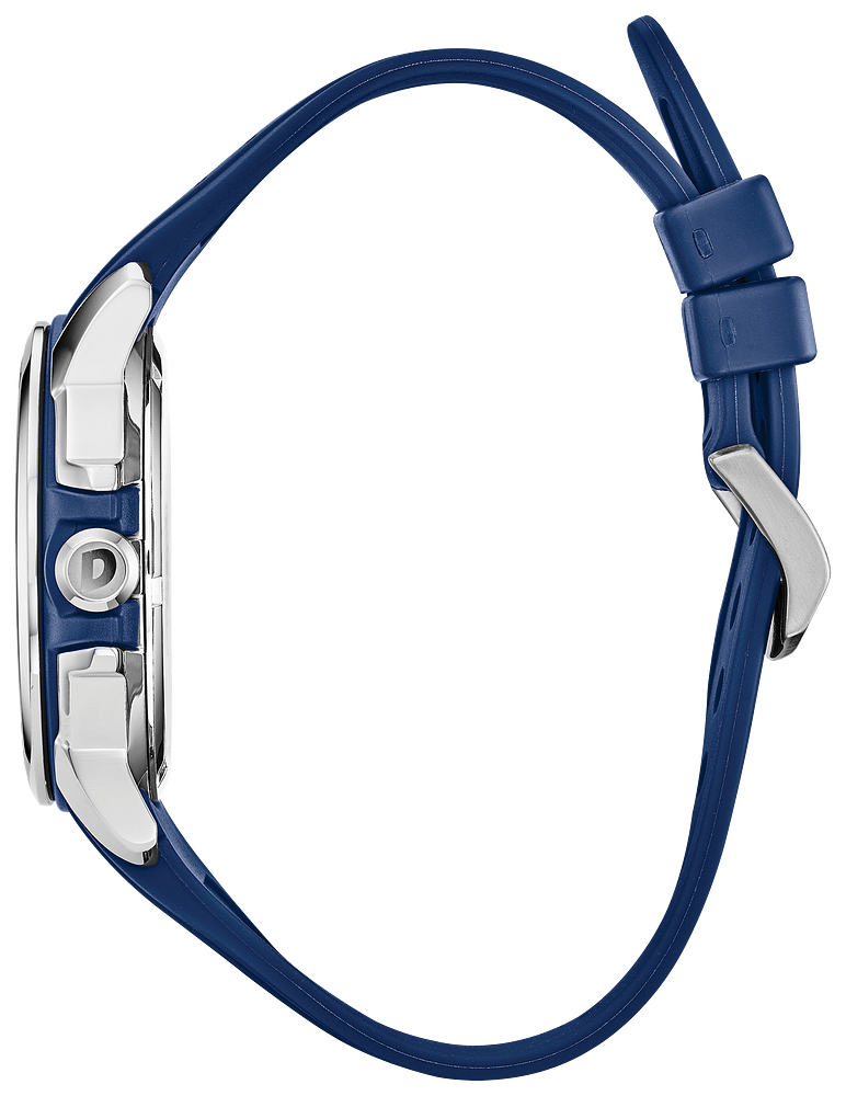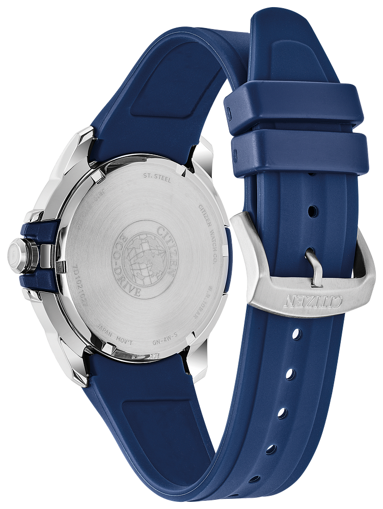Take action and show your inner drive with the sporty styling of the CITIZEN AR, powered by light with Eco-Drive technology. Featured with a stainless steel case with midnight blue chroma finishing accents , midnight blue polyurethane strap and dark blue dial with date. Featuring our Eco-Drive technology – powered by light, any light. Never needs a battery. Caliber number J810.