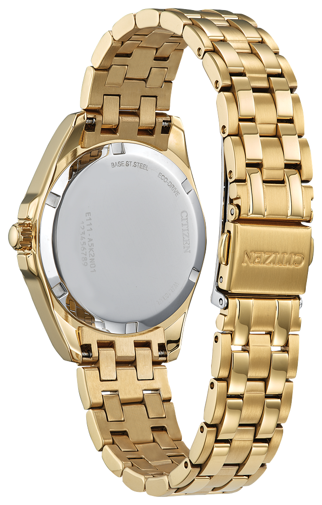 A refined take to a classic style. Featuring a gold-tone stainless steel case with a champagne 3-hand dial and date function, the newest addition to the Classic collection is understated and stylish. This Classic watch includes a gold-tone stainless steel bracelet with a fold-over clasp and is Sustainably powered by light with Eco-Drive technology, this watch never needs a battery and offers a sleek look and upscale feel.