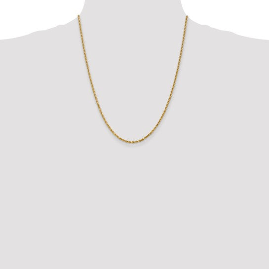 2.25mm Rope Chain Necklace Solid 10K Yellow Gold 20"