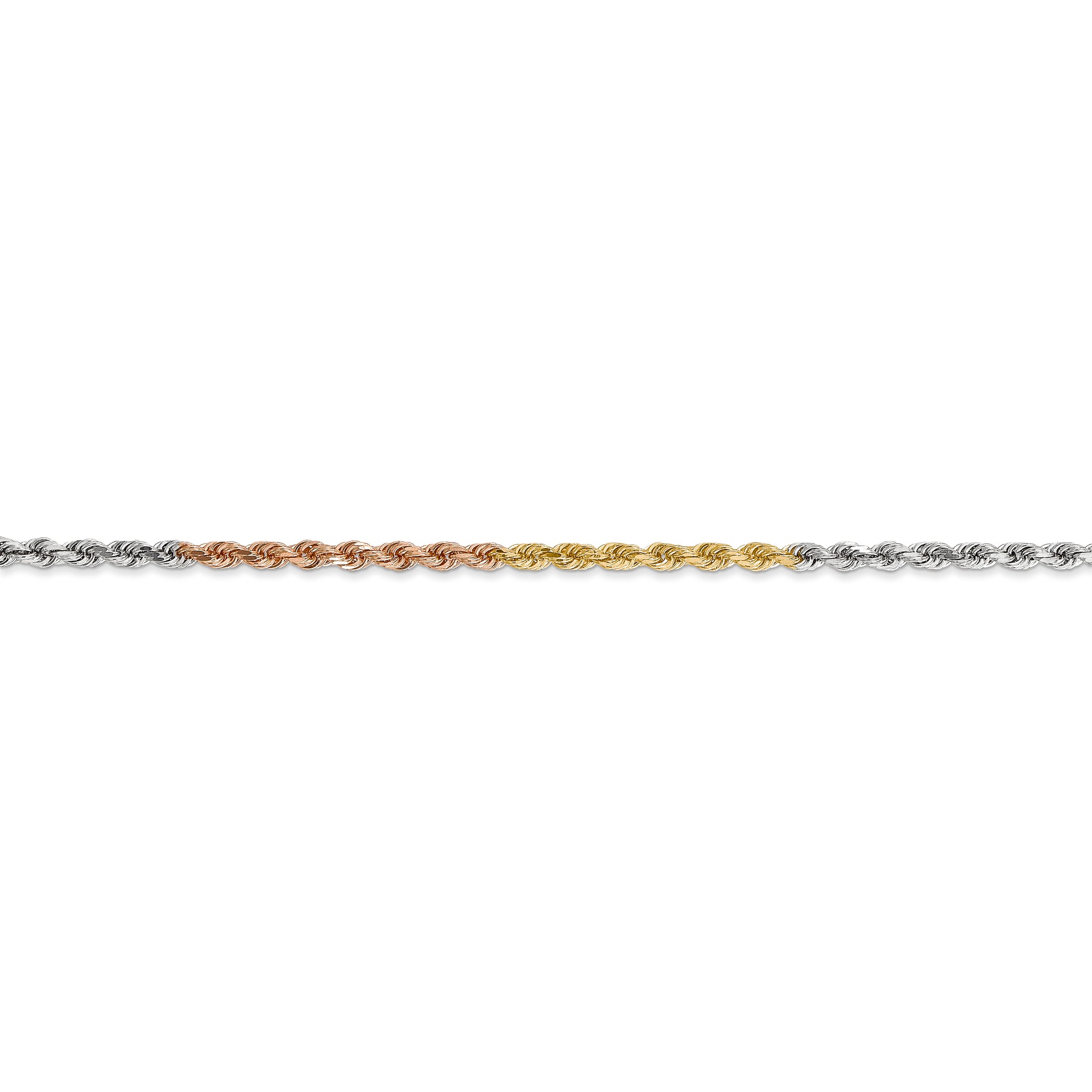 14K Tri-colored 24 inch 2.5mm Diamond-cut Rope with Lobster Clasp ChainPRODUCT INFORMATIONMetal: 14k Tri-color